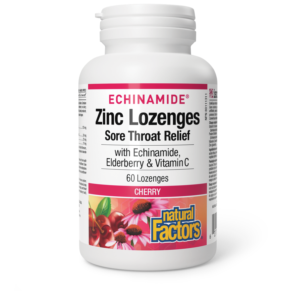 Natural Factors Zinc Lozenges with Echinamide, Elderberry & Vitamin C 60 Lozenges Cherry