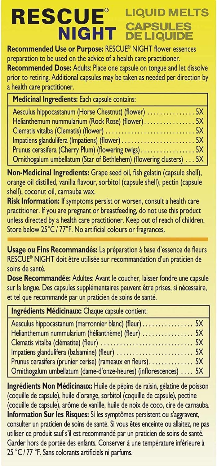 - BACH RESCUE NIGHT LIQUID MELTS: Quick-dissolve capsules to help you switch off before bedtime