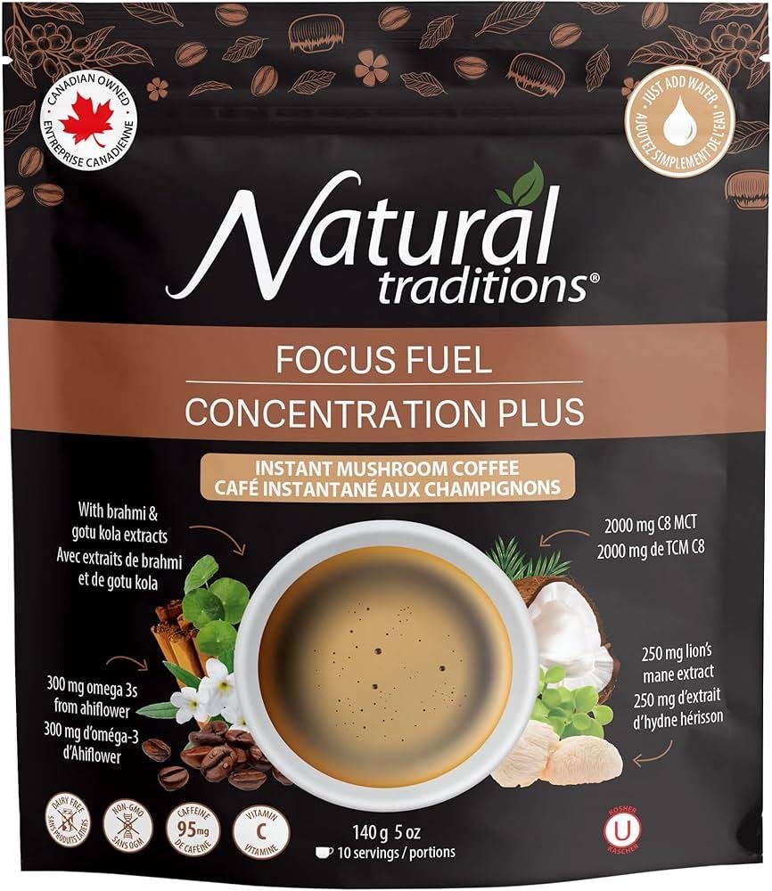 Organic coconut milk powder (coconut milk, maltodextrin, gum acacia), Organic instant coffee, Organic MCT powder (MCT oil, gum arabica), Organic coconut palm sugar, Organic acacia fibre, Organic lion’s mane extract, Organic cinnamon extract, Organic vanilla flavour, Organic brahmi extract, Organic gotu kola extract, Sea salt