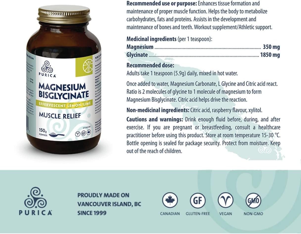 Magnesium Effervescent 150 Grams (Lemon Lime) Purica
