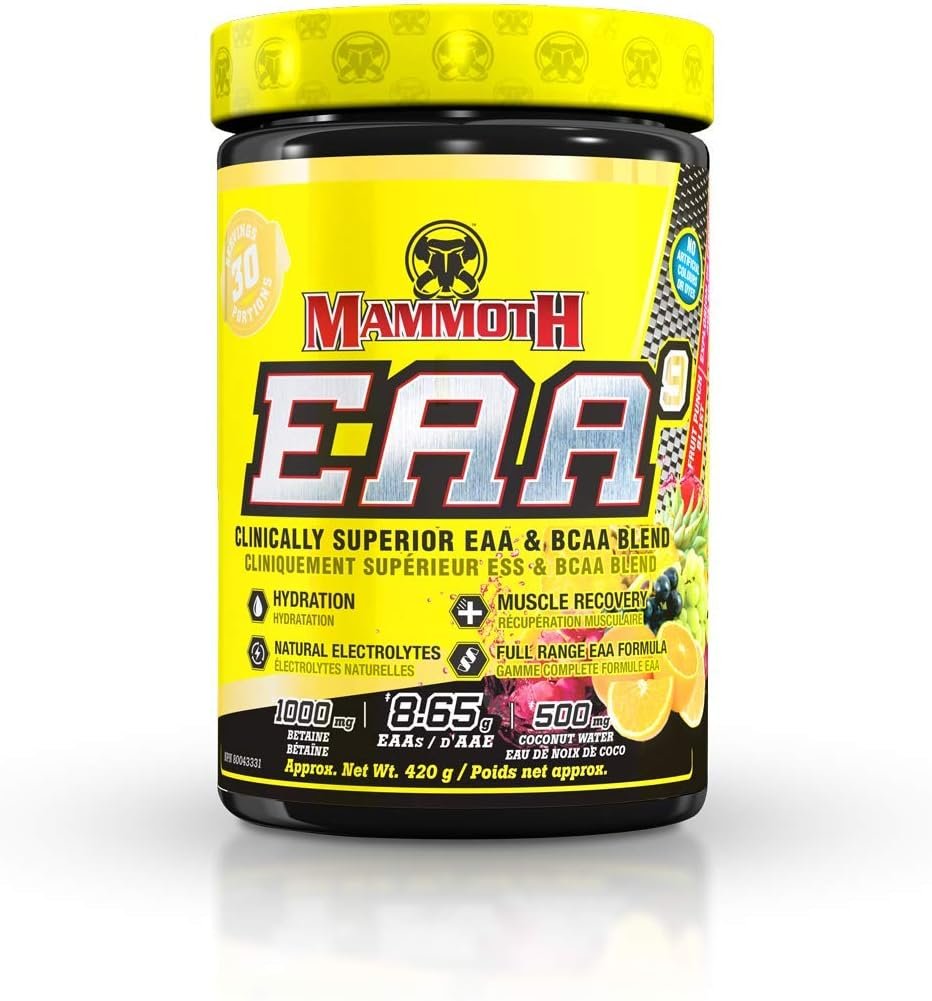 - 1000mg: Betaine – Aids in Digestion and Absorption, supports liver function, & detox. Can Improve Physical Performance & Body Composition when combined with Methionine Betaine increases Protein Synthesis & the potential for Muscle Growth/Strength. Mammoth EAA9 contains 284 mg of Methionine!