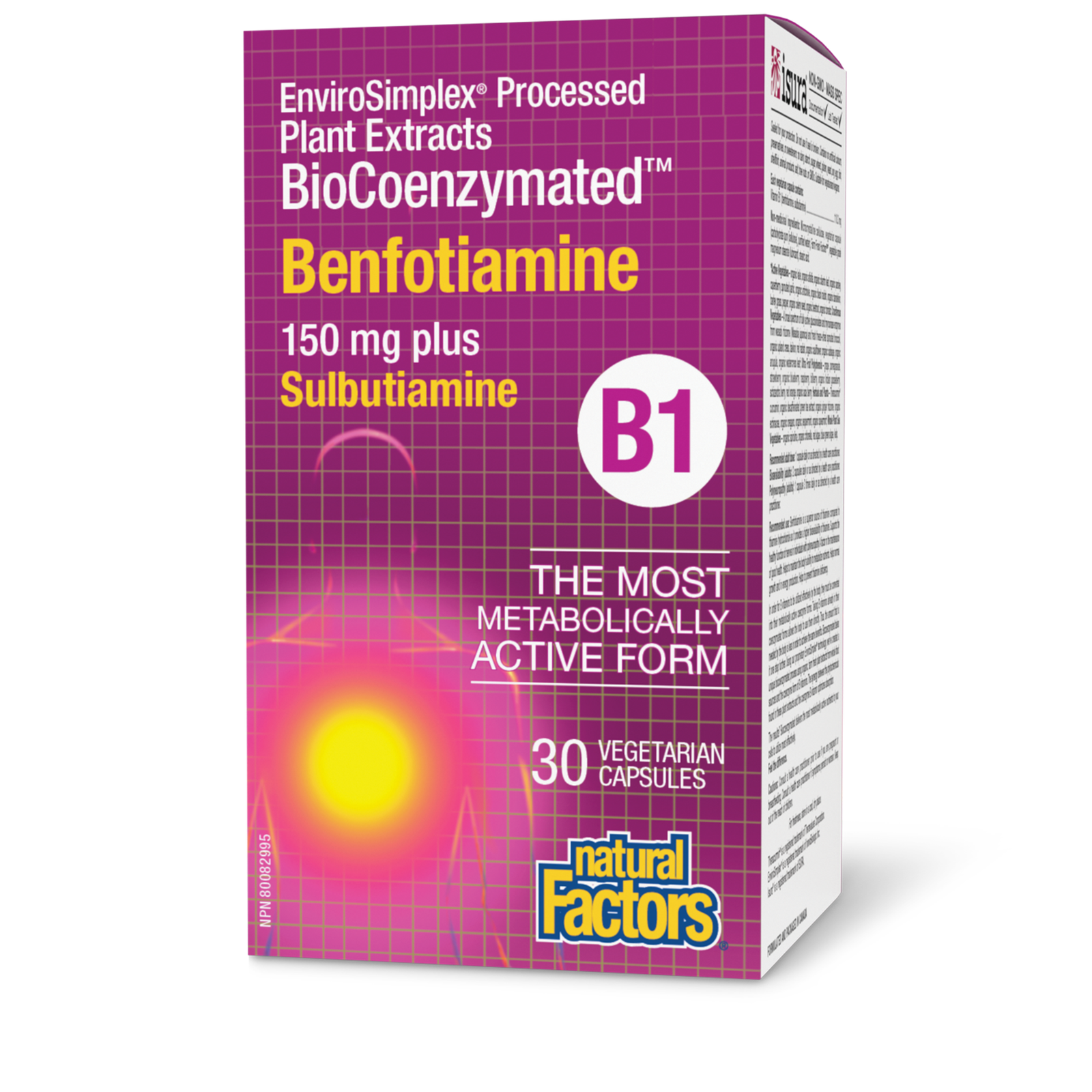 Natural Factors BioCoenzymated Benfotiamine represents the next generation of nutritional supplements, providing 150 mg of highly bioavailable coenzymated vitamin B1 in the form of benfotiamine, alongside sulbutiamine, as well as Farm Fresh Factors? for advanced absorption to support nerve function and energy metabolism.