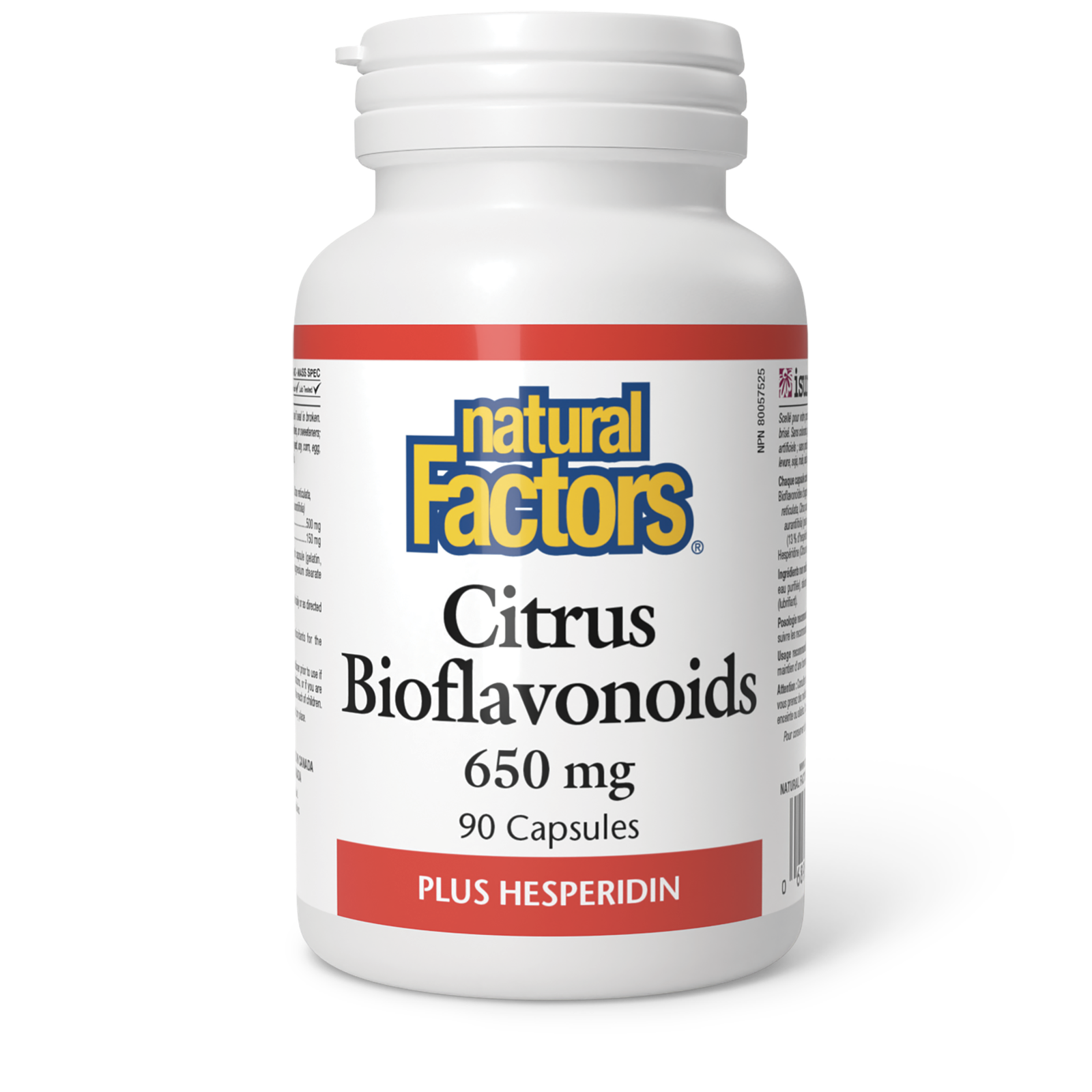 Bioflavonoids are a group of plant pigments that are largely responsible for colours of many fruits and vegetables, and include a large number of nutrients with antioxidant activity. They are sometimes referred to as vitamin P because they have vitamin-like properties. Citrus bioflavonoids are derived from the rind and pulp of citrus fruits.Citrus bioflavonoids work synergistically with vitamin C as they are needed for vitamin C to be used effectively by the body. They also increase the effectiveness of vitamin C by slowing down its breakdown. Bioflavonoids possess strong antioxidant activity, helping to fight poor health and the negative symptoms of aging.Hesperidin is a citrus bioflavonoid found in oranges. It exhibits superior antioxidant activity and health benefits, and has a particular affinity for the circulatory system. Hesperidin has been shown to help improve the health of capillaries and veins.Natural Factors Citrus Bioflavonoids is a complex of bioflavonoids with additional hesperidin for superior antioxidant support for the maintenance of good health. Each capsule is free from GMOs, soy and gluten, artificial colours, preservatives, or sweeteners.
