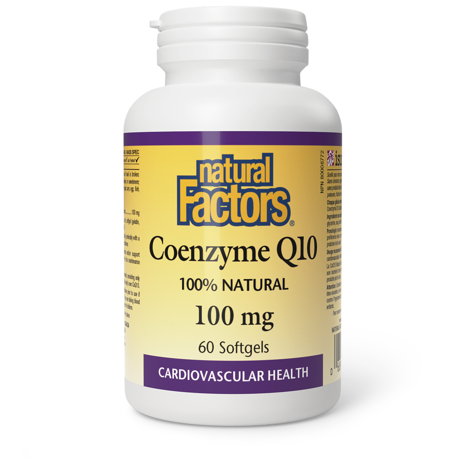 A vitamin-like essential nutrient, CoQ10 facilitates energy delivery to metabolic processes in the body. Due to its role in ATP synthesis, CoQ10 affects the function of all cells in the body, making it essential for health of all tissues and organs. It is known to have a beneficial impact on immune performance, cardio performance, and on liver and kidney performance. CoQ10 also provides antioxidant protection against oxidation in the body.Depletion of CoQ10 can develop in the aging process and is associated with many compromising health conditions. Further reduction can be seen in those taking statin (cholesterol lowering) medications. As CoQ10 has an affinity to those organs with higher energy requirements such as the kidneys, liver and heart, supplementation helps to restore energy and vitality to these tissues and helps in the maintenance of good health.Natural Factors Coenzyme Q10 100 mg is 100% natural and naturally fermented, consisting only of the natural trans isomer identical to the body?s own CoQ10 for superior effectiveness. This highest grade of CoQ10 is blended in a base of rice bran oil and vitamin E for enhanced absorption.
