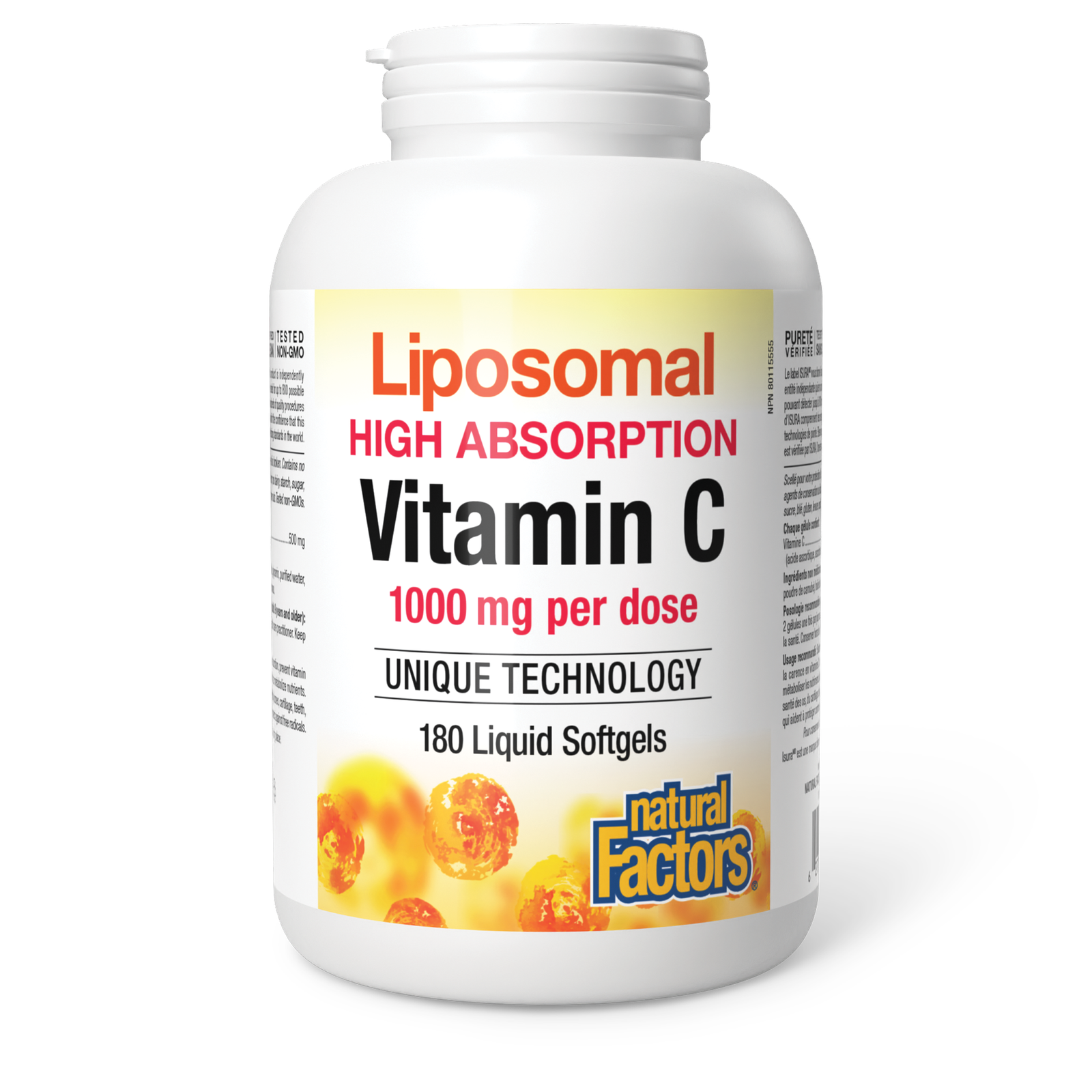 Natural Factors Liposomal Vitamin C High Absorption 1000 mg per dose 180 Liquid Softgels