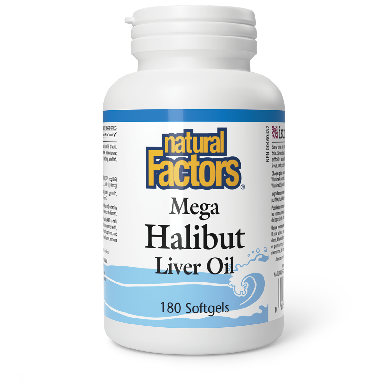 Halibut liver oil is an excellent source of preformed vitamins A and D and is easier for the body to use than beta carotene for some people with digestive disorders. Vitamin A is a fat-soluble vitamin that promotes healing and helps to boost the immune system. It benefits the eyes as well as soft tissue. Vitamin D, the sunshine vitamin, is also fat-soluble and acts as a hormone to assist the body’s absorption and utilization of calcium. It helps bones and teeth, stabilizes the nervous system and helps the blood and cardiovascular system and muscles. Recent research shows that vitamin D has a profound impact on many body systems. Although fish liver oils are excellent sources of preformed vitamin A, they should not be relied on as a source of essential fatty acids. You would consume too much vitamin A and D before getting what your body requires in omega oils. Natural Factors Mega Halibut Liver Oil uses advanced molecular distillation processing methods to protect the purity of our product while ensuring that there is no heavy metal or chemical contamination.