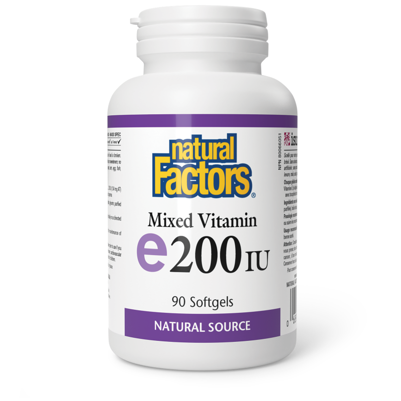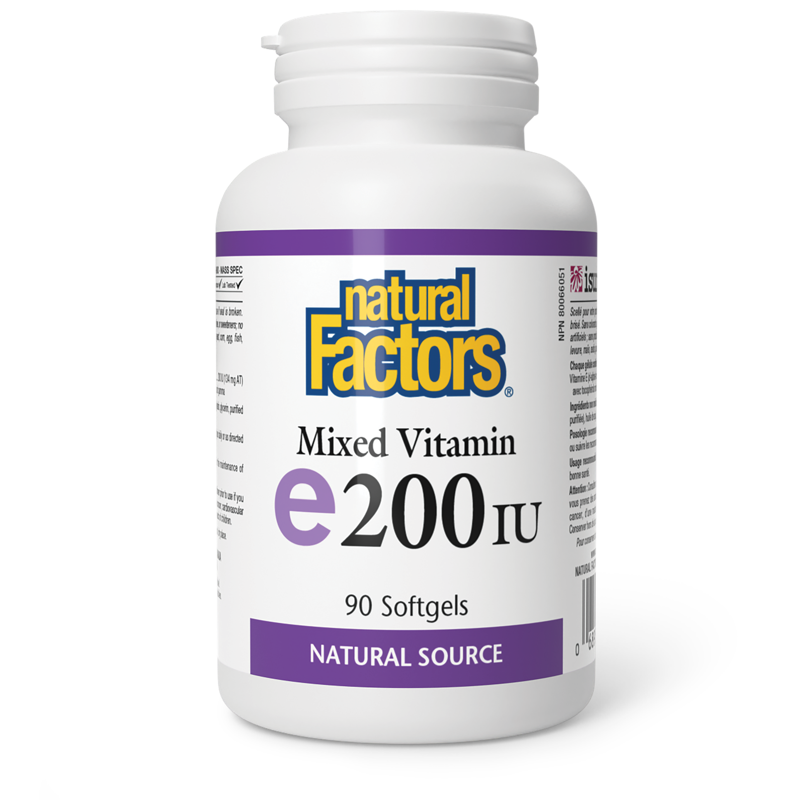Vitamin E is a fat-soluble vitamin that is comprised of a group of eight compounds: four tocopherols and four tocotrienols. Vitamin E activity is most often attributed to the d-alpha tocopherol form; however, research shows that beta-, gamma-, and delta-tocopherols also have significant biological activity in the body. Gamma-tocopherol has specifically been shown to exhibit superior anti-inflammatory and antioxidant properties.Natural Factors Mixed Vitamin E contains d-alpha tocopherol, along with beta-, delta-, and gamma- tocopherols. D-alpha tocopherol, the most potent tocopherol, is natural and is more available for use in the body than its synthetic counterpart dl-alpha tocopherol. Mixed vitamin E tocopherols enhance the anti-inflammatory and antioxidant activity of a single tocopherol vitamin E. Vitamin E is primarily known for its powerful antioxidant benefits. It helps to protect cell membranes against damage caused by free radicals and prevents the oxidation of LDL (?bad?) cholesterol. Oxidized LDL cholesterol contributes to the development of atherosclerosis, which inhibits normal circulation of oxygenated blood to the tissues. Vitamin E is also necessary for the structural and functional maintenance of cardiac, skeletal, and smooth muscles.