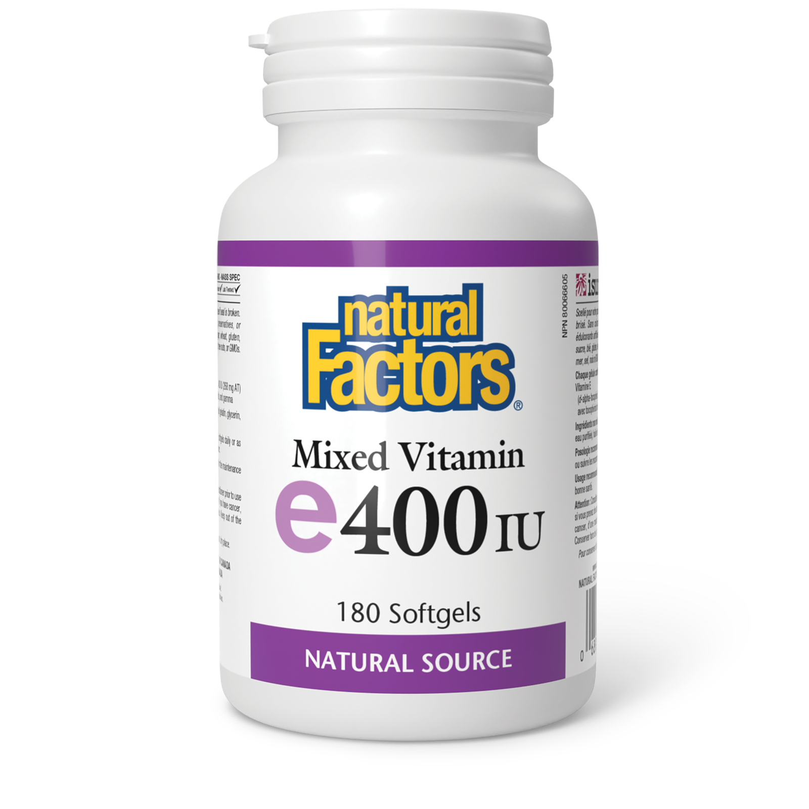 Natural Factors Mixed Vitamin E Natural Source 400 IU 180 Softgels