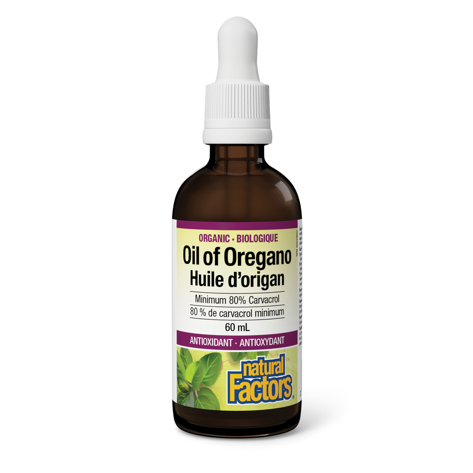 Organic Oil of Oregano from Natural Factors combines the antioxidant support of oregano and vitamin E for the maintenance of good health. Oregano has one of the highest antioxidant capacities of aromatic herbs. Numerous studies have associated its benefits with the compounds carvacrol, thymol, and rosmarinic acid. By working to scavenge free radicals, these key active compounds help counteract oxidation within the body. Herbalists and traditional practitioners have long used oregano as a remedy for infections of all kinds, both topically and as a supplement. As an antimicrobial, oil of oregano is able to protect against infectious microorganisms, such as bacteria, yeast, fungi, and parasites. It also has anti-inflammatory qualities and is used to help relieve respiratory conditions. Organic Oil of Oregano is made from wild-crafted Mediterranean oregano, hand-harvested from the Origanum vulgare plant. To maintain the purity and concentration of its active compounds, the whole herb is gently steam distilled without the use of chemicals. Each softgel or liquid dose contains organic oil of oregano blended in a 1:4 ratio with organic cold-pressed extra-virgin olive oil. It is guaranteed to contain at least 80% of carvacrol and is available in both liquid and convenient softgel formats.