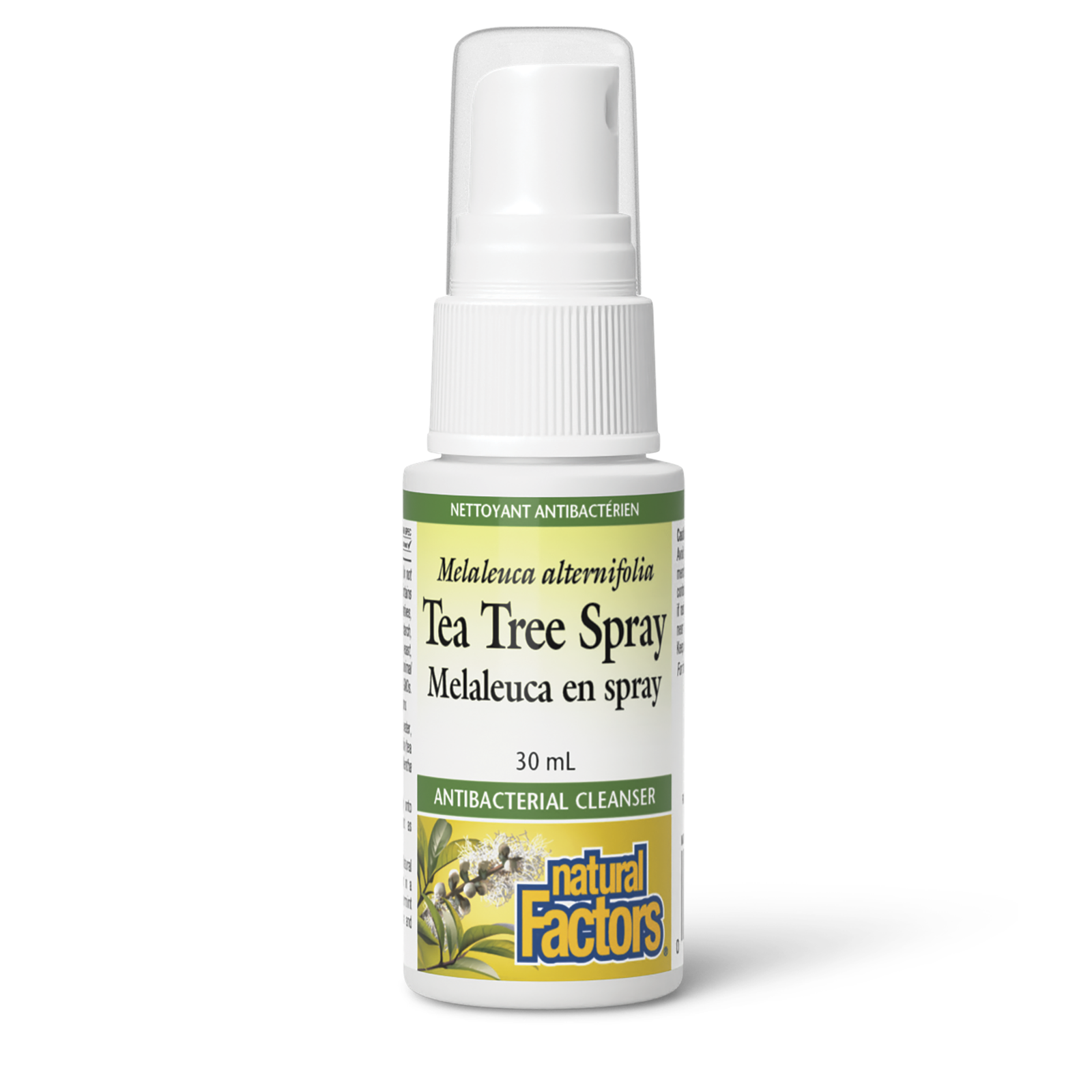 Traditionally used by the Aboriginal people of Australia, the leaves of the Tea Tree (Melaleuca alternifolia) plant have been shown to help heal wounds, infections, and a wide range of skin conditions. European settlers learned how to use the tea tree leaves to extract the oil, using it to treat cuts, abrasions, burns, insect bites, and other skin conditions.Tea tree oil contains over 100 plant chemicals, including terpenin-4-ol, its main active antimicrobial compound. It fights against microbes and bacteria by damaging the cell membrane, disrupting the proteins within them and rendering them unable to proliferate and cause disease. Tea tree has also shown antiseptic and antifungal activity, and may help against yeast infections as well. Unlike antibiotics, tea tree oil does not contribute to antibiotic resistance.Natural Factors Tea Tree Spray combines antimicrobial tea tree oil with peppermint and menthol to soothe, freshen, and kill odour-causing bacteria. It is derived from 100% pure tea tree oil and is safely and gently obtained through steam distillation and contains no less than 30% terpinen-4-ol for powerful antiseptic and healing action. The travel-size spray is perfect for packing, whether to the gym, on a hike, or a longer camping trip for convenient on-the-go first aid.