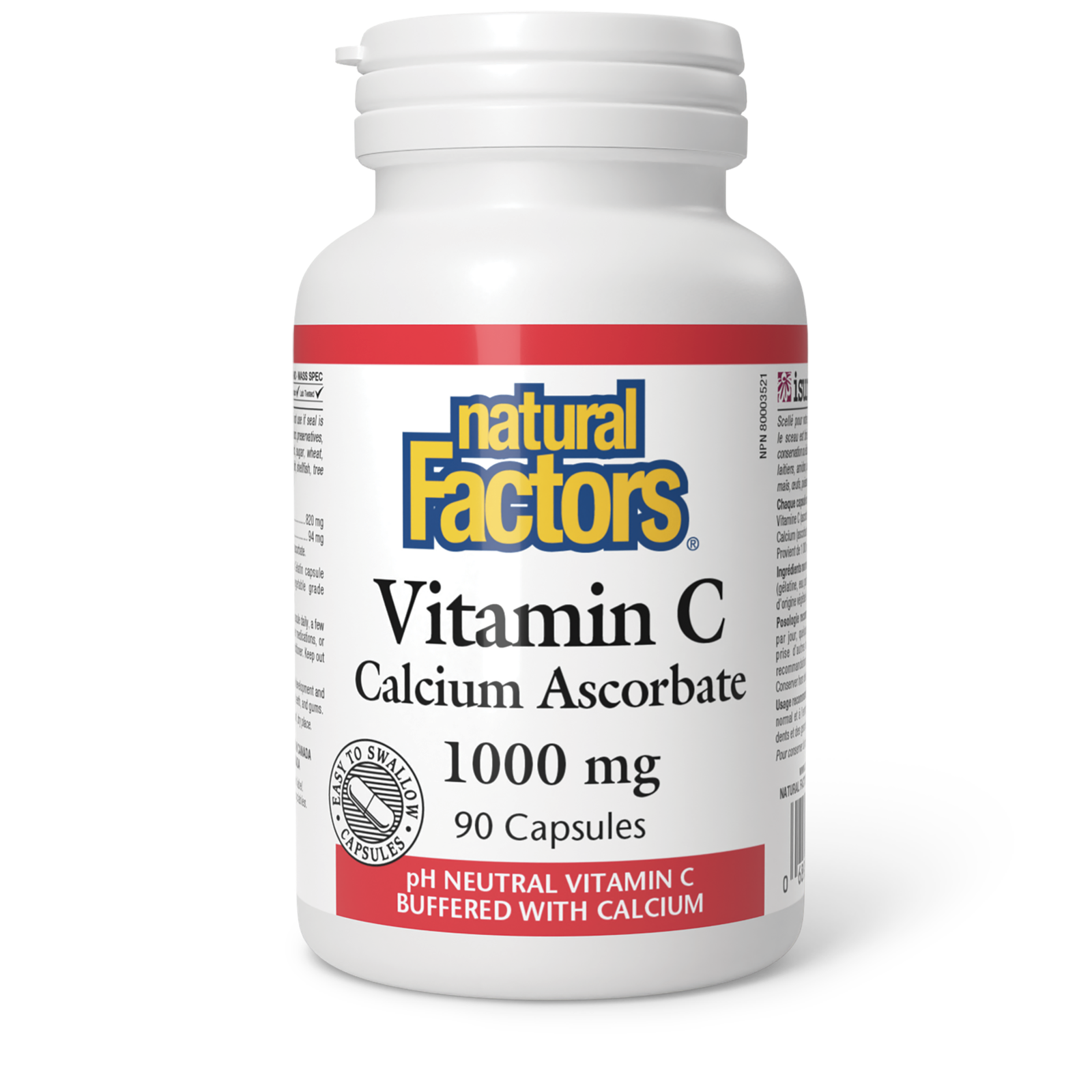Vitamin C is a powerful vitamin with infection-fighting properties, playing a large role in immune system function. Vitamin C is crucial for the formation of collagen, making this vitamin very important for wound repair, healthy gums, strong bones and teeth and, in the prevention of bruising.As a powerful antioxidant, it protects the aqueous areas of the body (including the blood, intracellular fluid, and interstitial fluid) from free radicals. Because it is a water-soluble vitamin, the body cannot store vitamin C, making regular supplementation vital. Natural Factors Vitamin C Calcium Ascorbate is a pH neutral vitamin C buffered with calcium. As a neutral salt, it is non-acidic unlike other forms of vitamin C, and is recommended for individuals who experience gastrointestinal problems (abdominal pain or diarrhea) with regular vitamin C. It can also be taken at higher doses daily for therapeutic reasons without any gastrointestinal side effects.Equally important, calcium ascorbate also replenishes the calcium that is excreted in the urine due to the chelating properties of vitamin C. Calcium also allows vitamin C to remain in the cells for a longer period.
