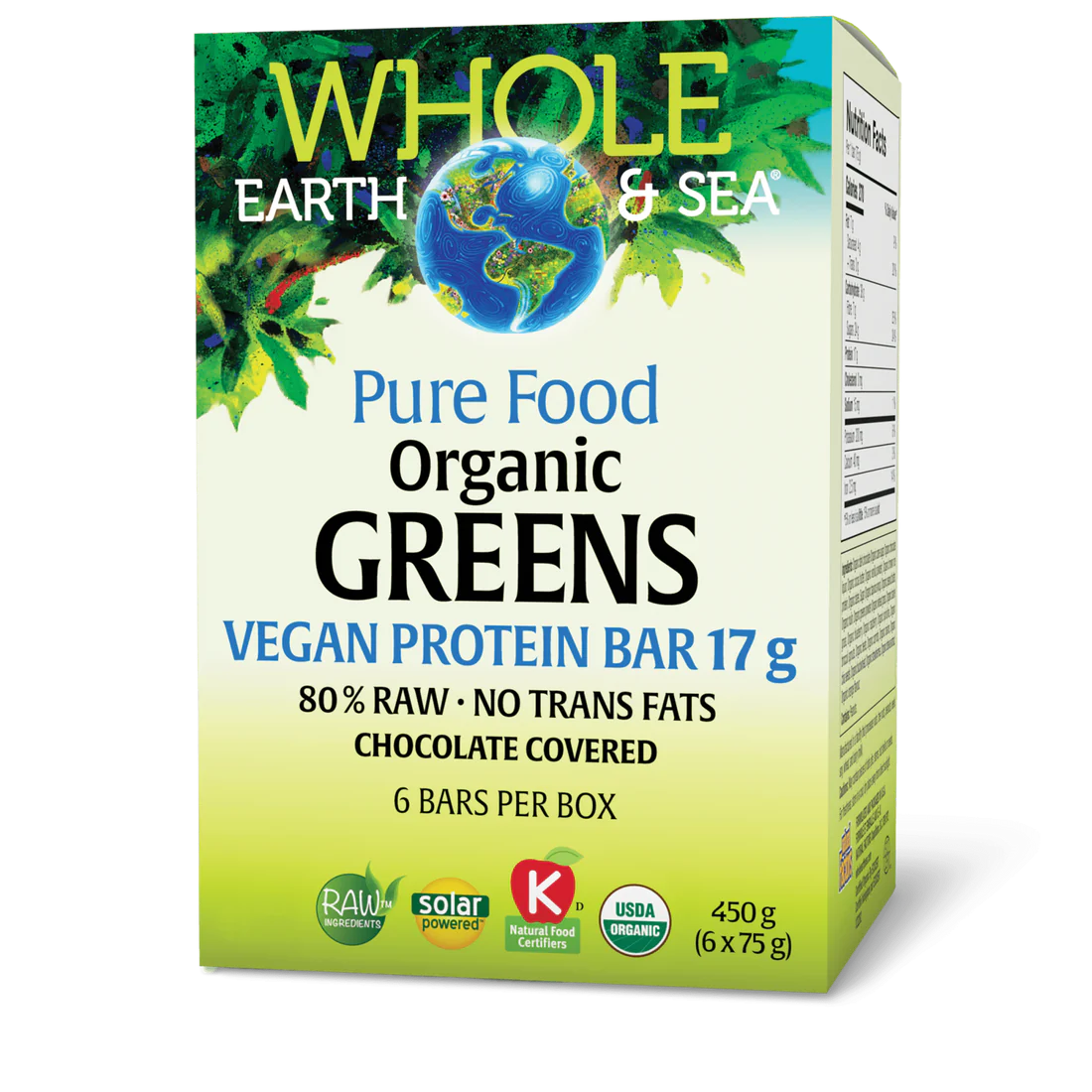 Organic Greens Vegan Protein Bar 17 g, Whole Earth & Sea 12 in a Box