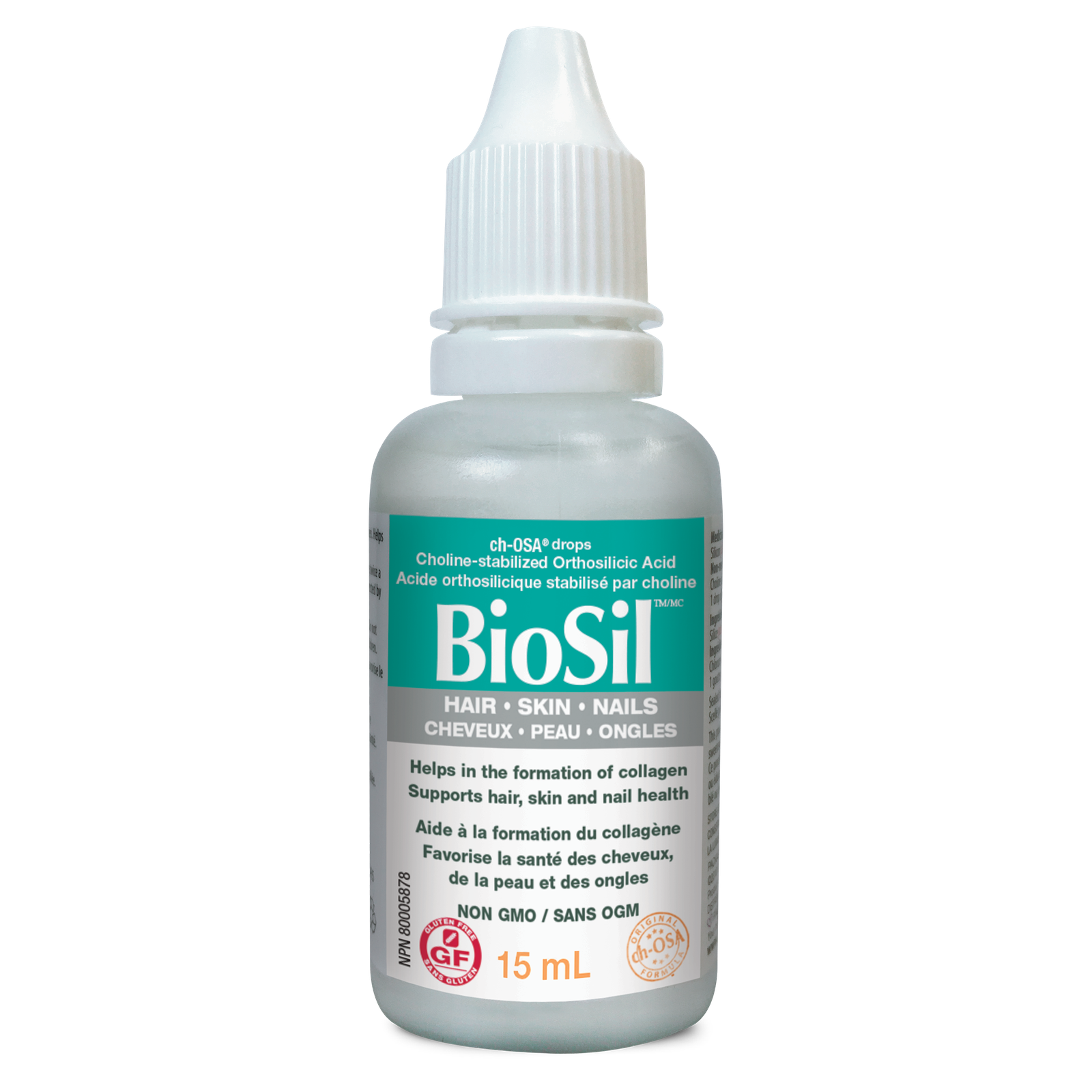 Non-medicinal Ingredients: Choline chloride, glycerol, purified water.1 drop of BioSilTM (approx. 0.05 mL) is equivalent to 1 mg of silicon.